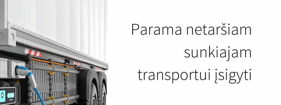 11,6 mln. eurų valstybės parama skirta naujų, visiškai netaršių (elektra arba vandeniliu varomų) sunkiasvorių krovininių transporto priemonių (N3) įsigijimui. Susisiekimo ministerijos duomenimis, bendrą grynųjų elektromobilių ir iš išorės įkraunamų hibridų skaičių N3 klasėje 2022 m. sudarė 2 automobiliai, 2023 m. – 8.