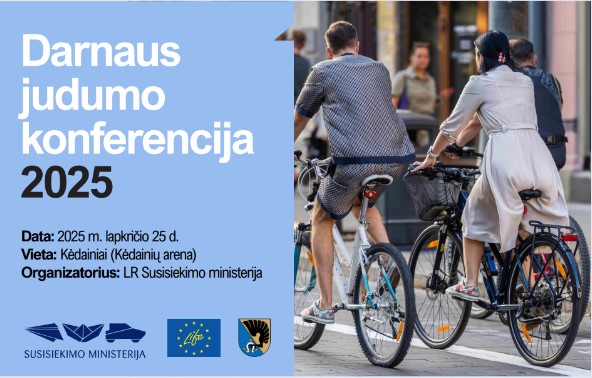 Darnaus judumo konferencija 2025 – tai kasmetinis Lietuvos Respublikos susisiekimo ministerijos organizuojamas renginys, skirtas aptarti tvaraus transporto, klimato kaitos švelninimo ir inovacijų mobilumo srityse klausimus. Šių metų konferencijoje, vyksiančioje lapkričio 25 d. Kėdainiuose...