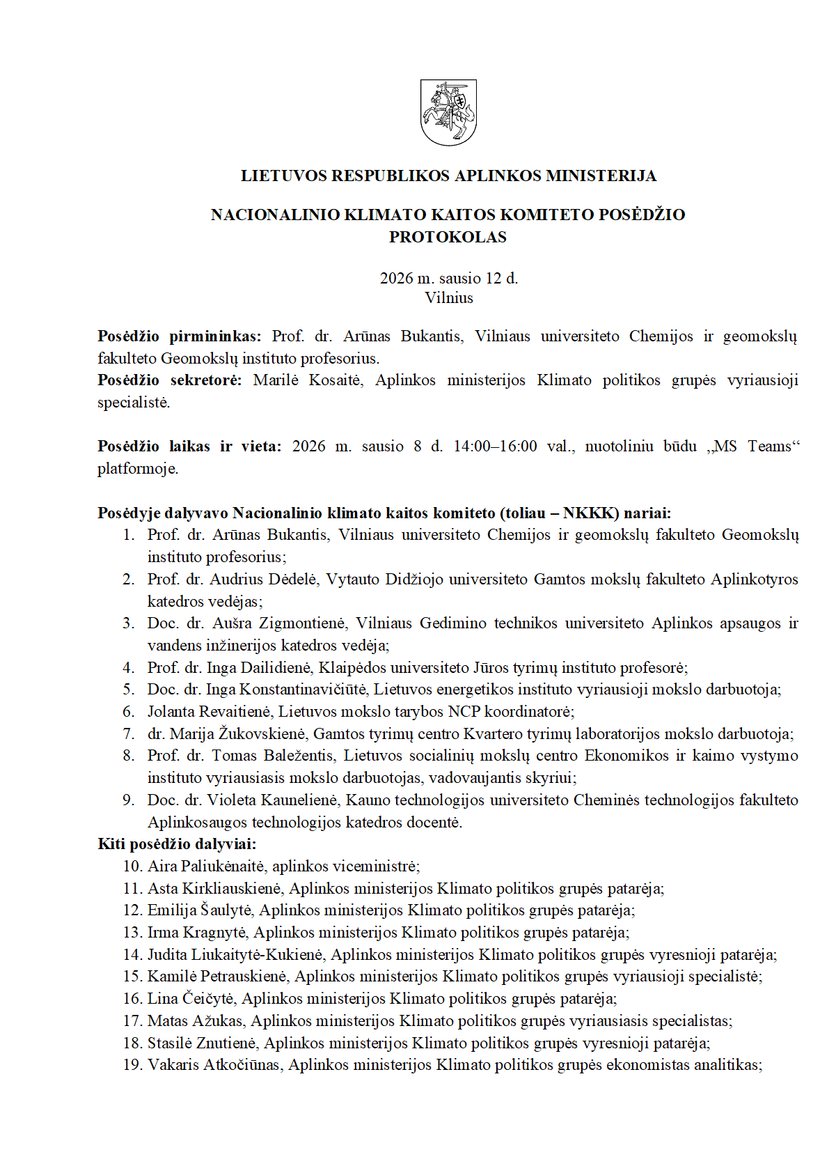 Nacionalinio klimato kaitos komiteto posėdžių ataskaitos