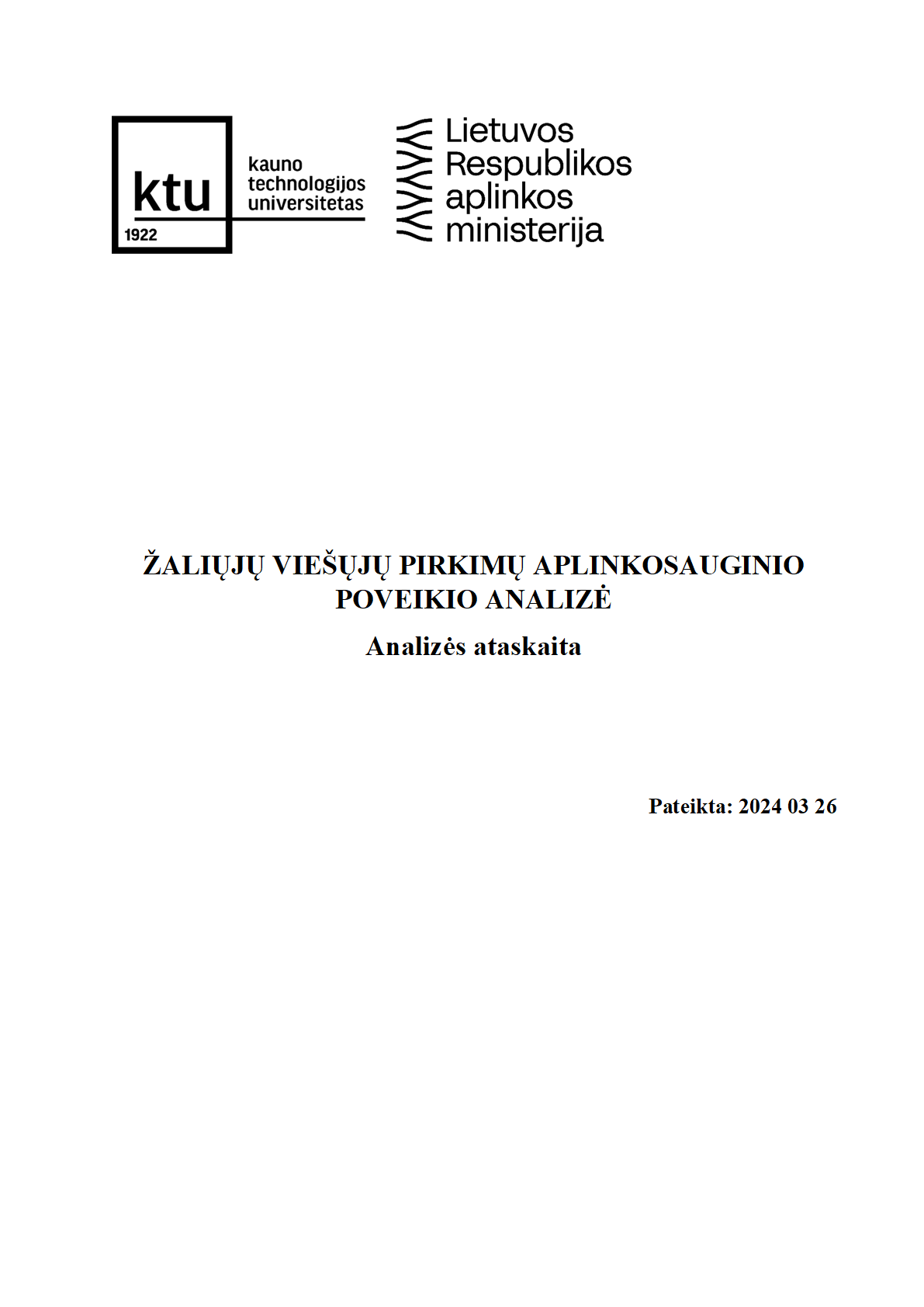 ANALYSIS REPORT ON THE ENVIRONMENTAL IMPACT OF GREEN PUBLIC PROCUREMENT (only in Lithuanian, English summary available)