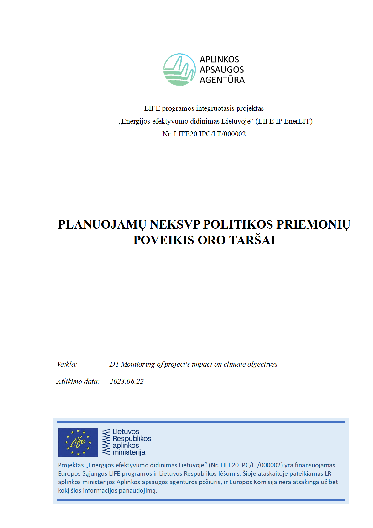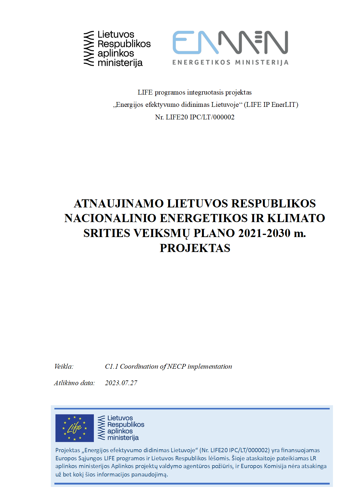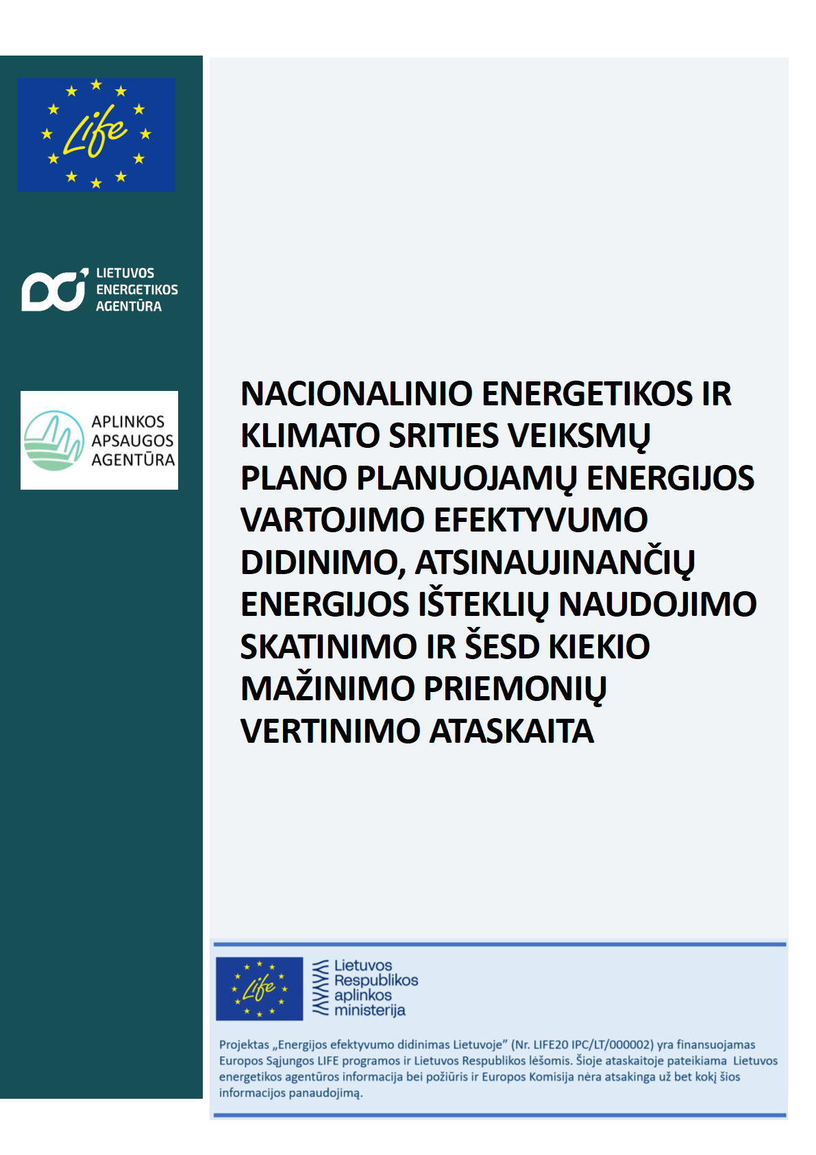 REPORT ON THE ASSESSMENT OF THE MEASURES PLANNED UNDER THE NATIONAL ENERGY AND CLIMATE ACTION PLAN FOR IMPROVING ENERGY EFFICIENCY, PROMOTING THE USE OF RENEWABLE ENERGY SOURCES, AND REDUCING GHG EMISSIONS (Only in Lithuanian, English summary available)