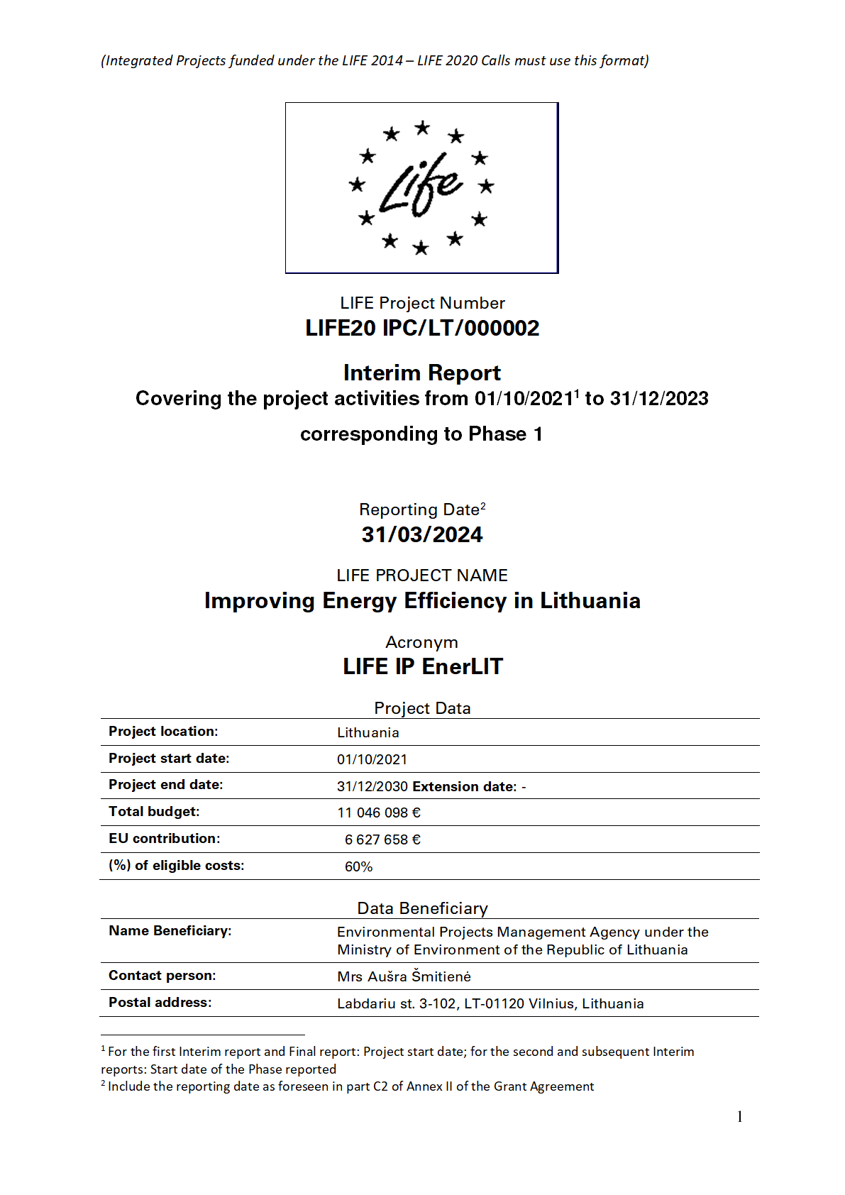 This report describes the activities carried out during the period from October 2021 to December 2023 with the efforts and funds of the LIFE IP EnerLIT project, which supports the implementation of the National Energy and Climate Action Plan for 2021–2030.