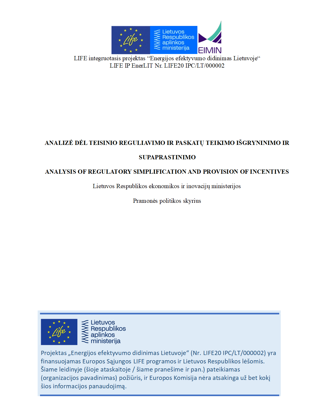 Analysis of Legal Regulation and Incentive Simplification and Clarification (Only in Lithuanian, English summary available)