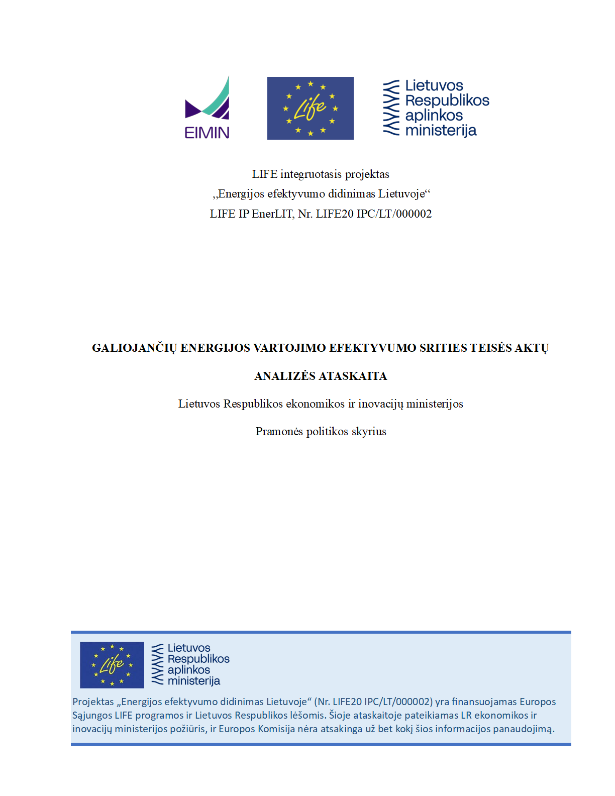 The Analysis Report of Existing Energy Efficiency Legislation includes a catalog of EU and Lithuanian legal acts related to or affecting energy efficiency in the industrial sector.