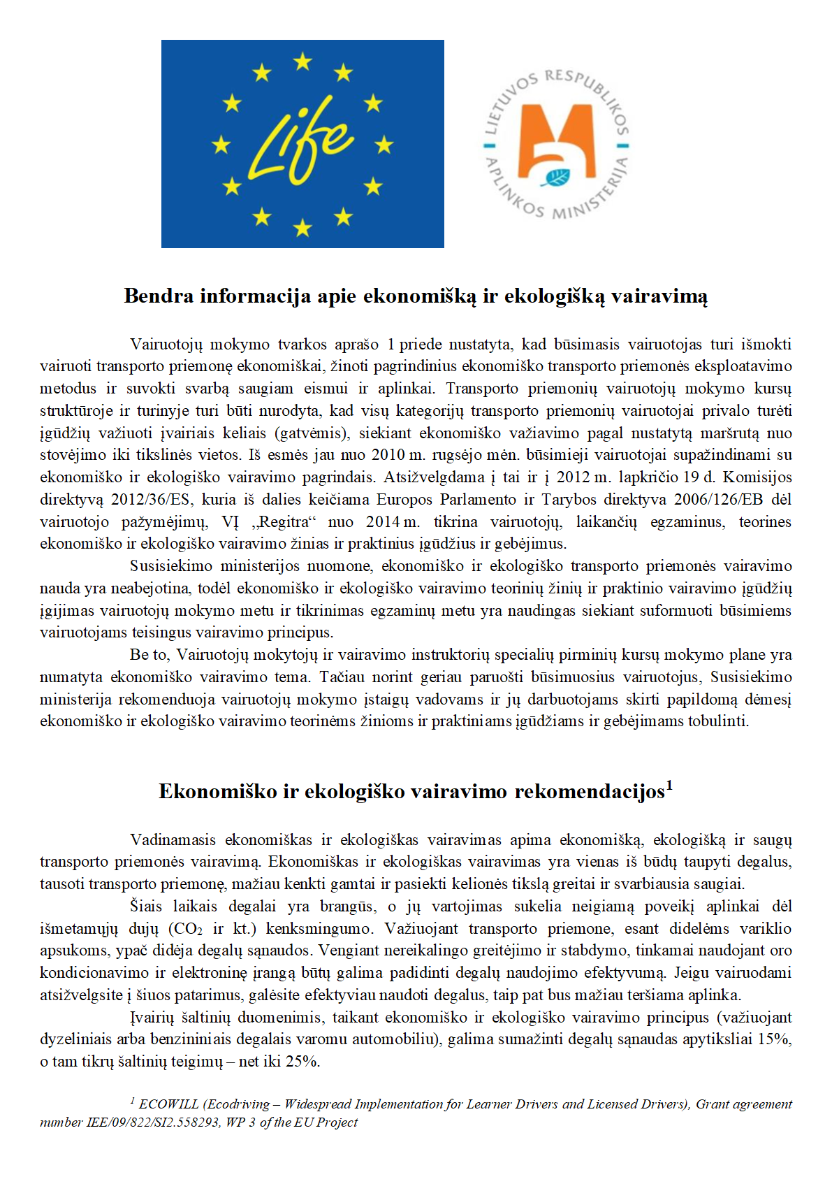 Recommendations for economical and eco-friendly driving (Only in Lithuanian, English summary available)