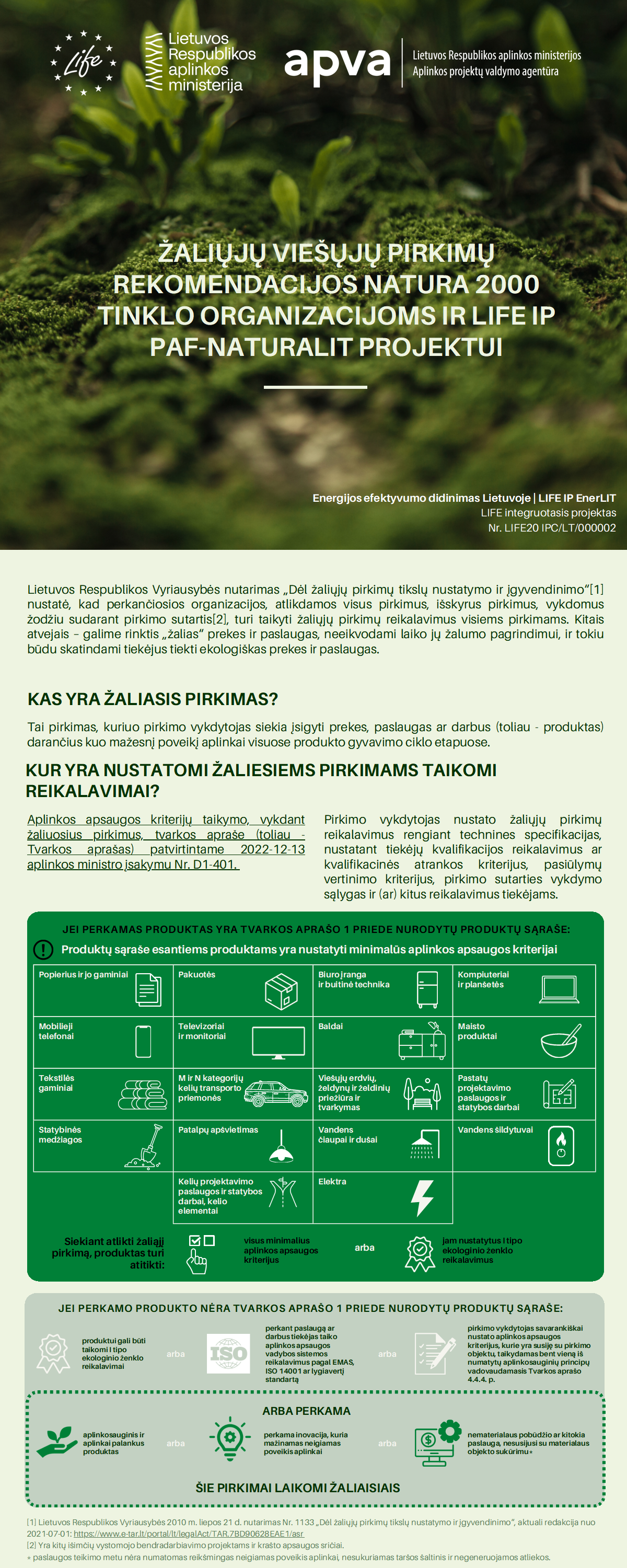 Recommendations for Green Public Procurement for NATURA 2000 Network Organizations and the LIFE IP PAF-NATURALIT Project (Only in Lithuanian, English summary available)