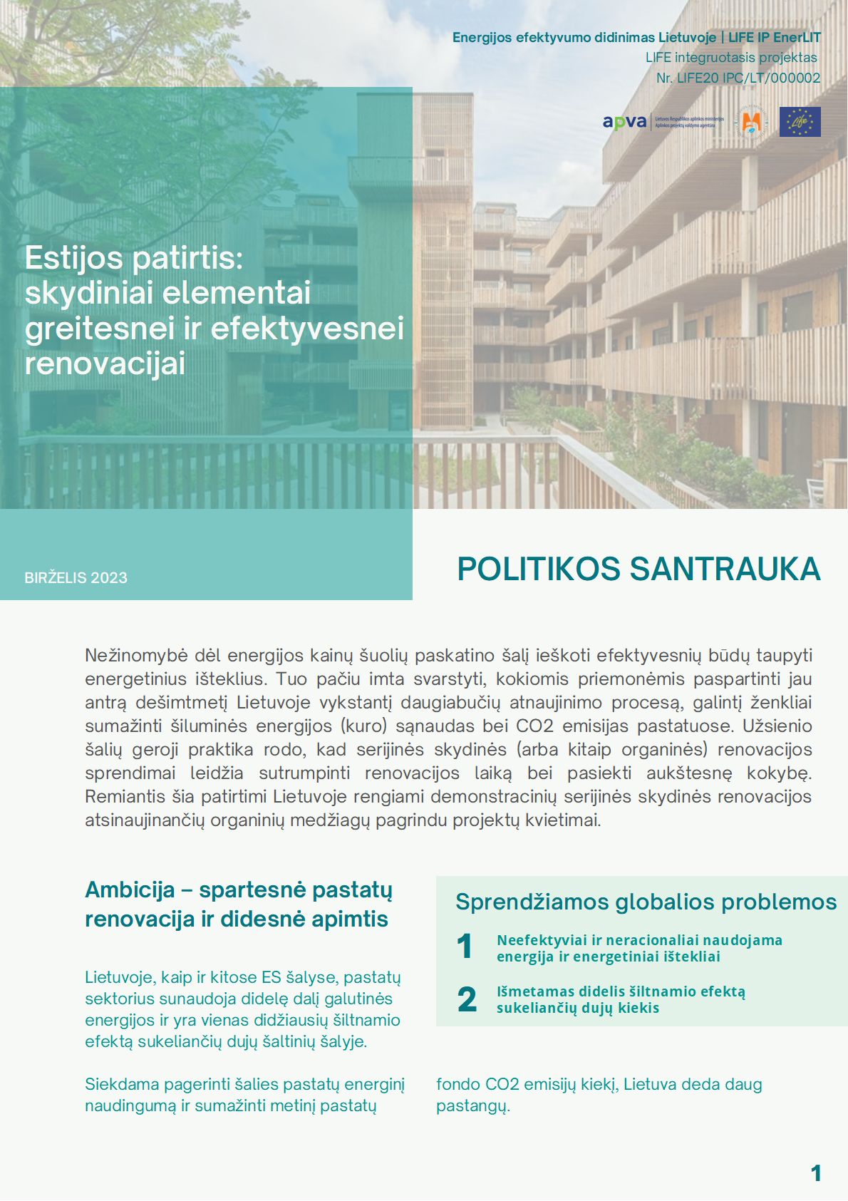 This policy summary presents the challenges of building renovation in Lithuania and the opportunities to expand its scope and pace, based on Estonia's experience.
