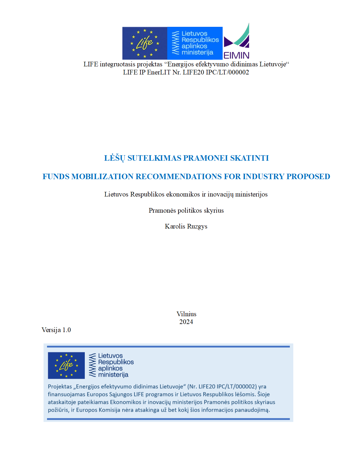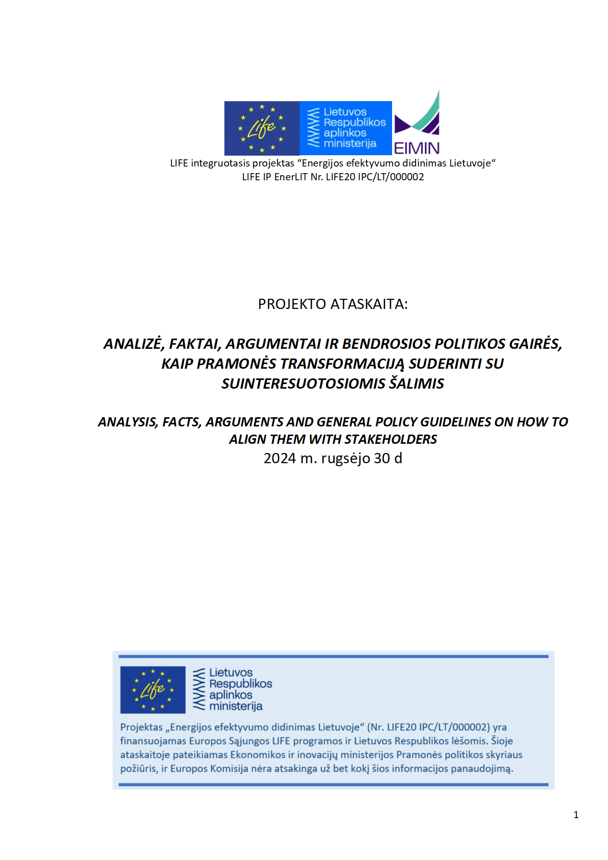 ANALYSIS OF THE TRANSFORMATION TOWARDS ENERGY-EFFICIENT INDUSTRY (Only in Lithuanian, English summary available)