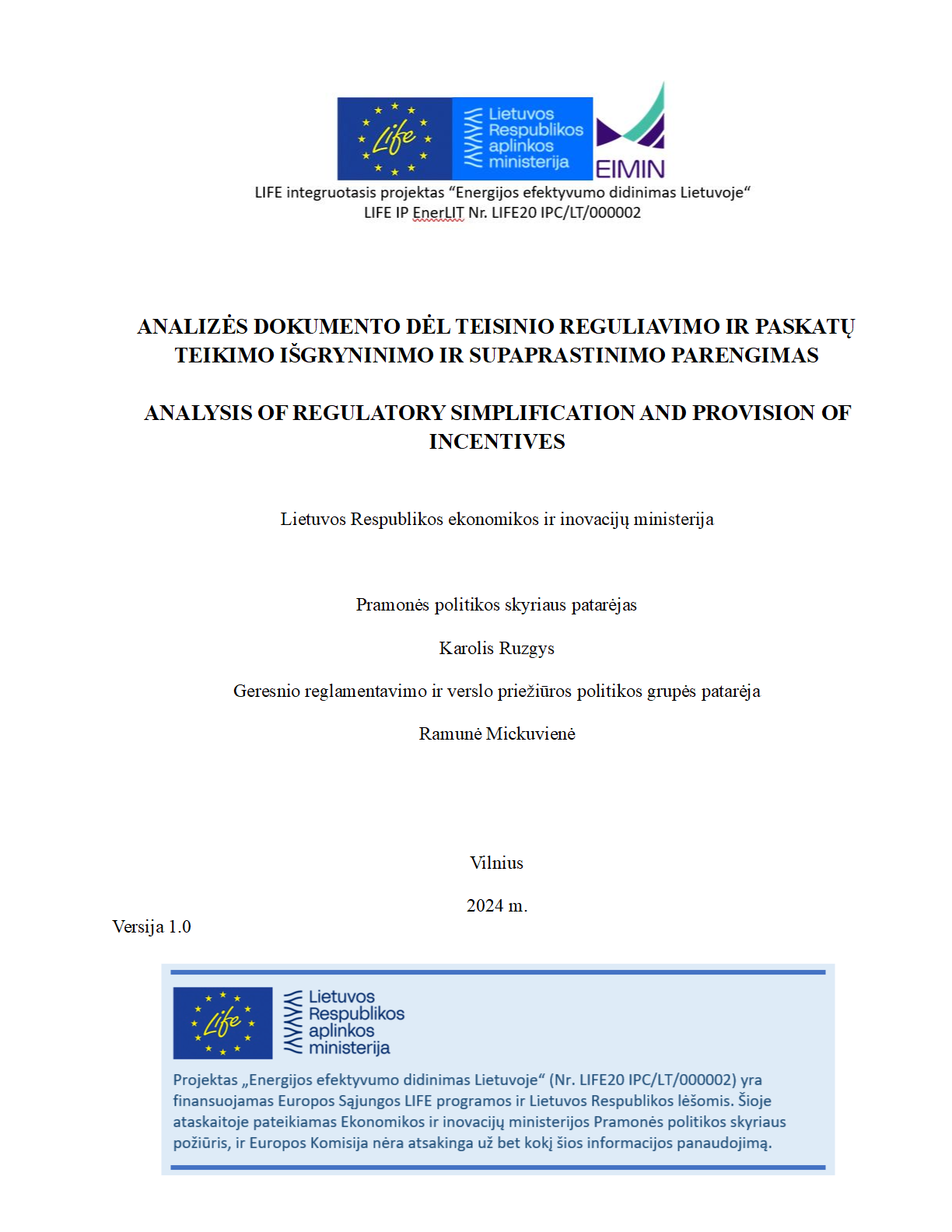 PREPARATION OF AN ANALYTICAL DOCUMENT ON THE STREAMLINING AND SIMPLIFICATION OF LEGAL REGULATION AND INCENTIVES (only in Lithuanian, English summary available)