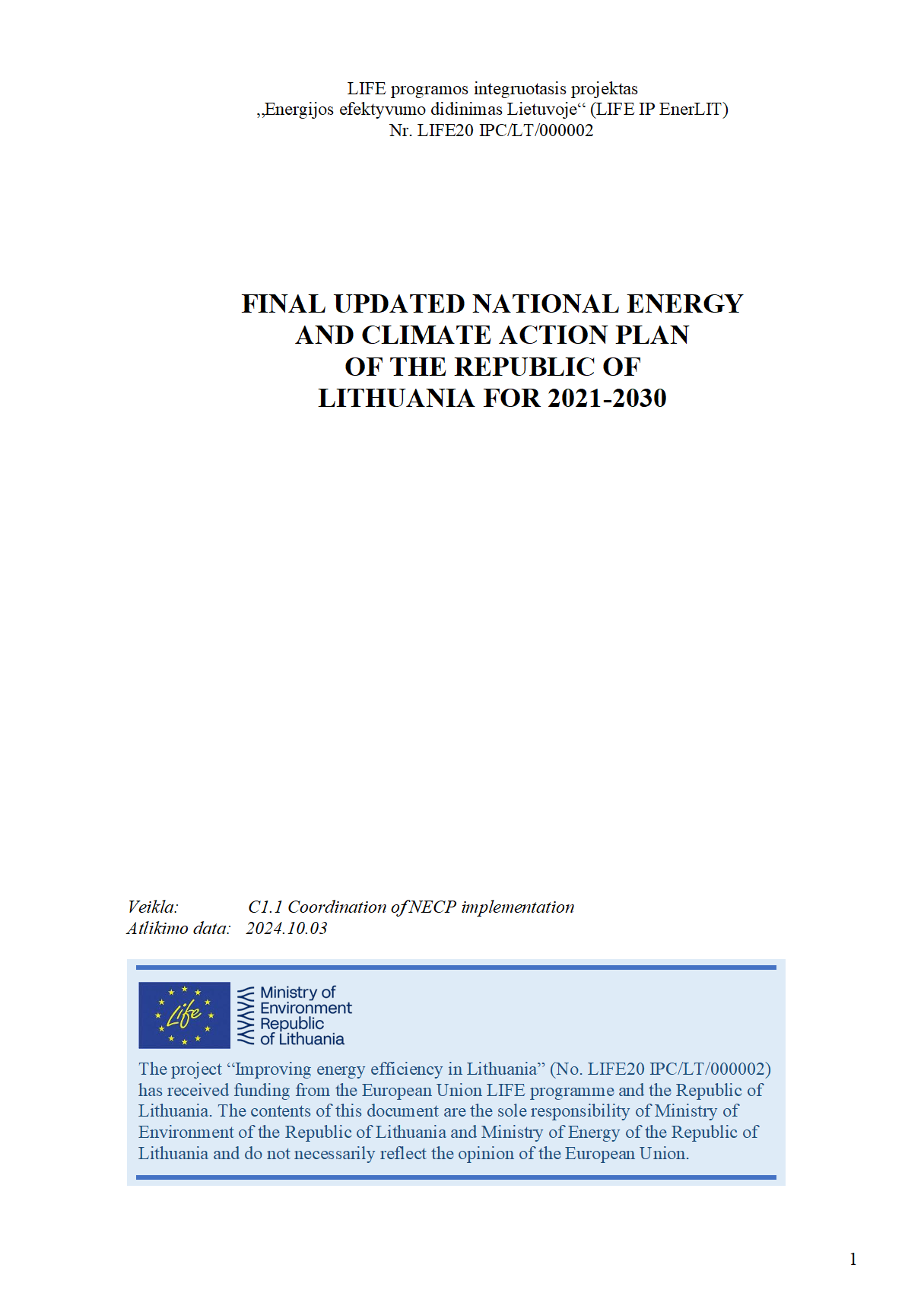 FINAL UPDATED NATIONAL ENERGY AND CLIMATE ACTION PLAN OF THE REPUBLIC OF LITHUANIA FOR 2021-2030