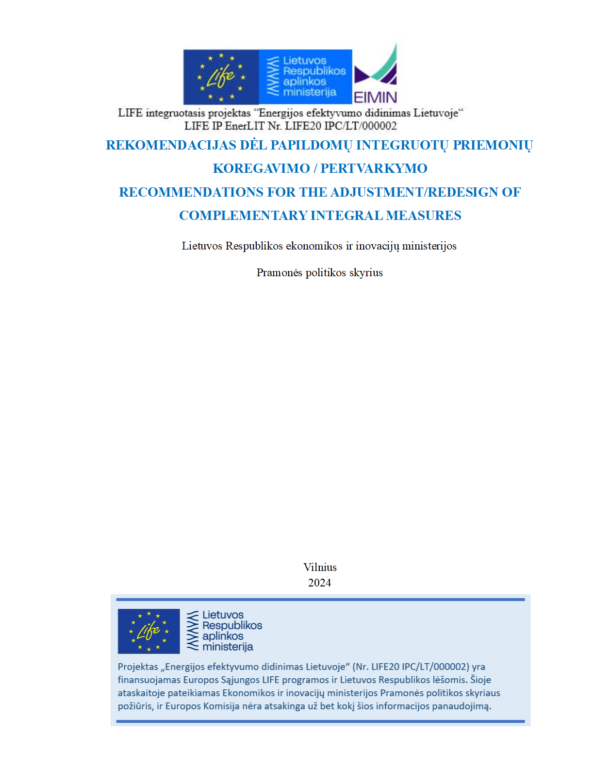 RECOMMENDATIONS FOR THE ADJUSTMENT/RESTRUCTURING OF ADDITIONAL INTEGRATED MEASURES (only in Lithuanian, English summary available)