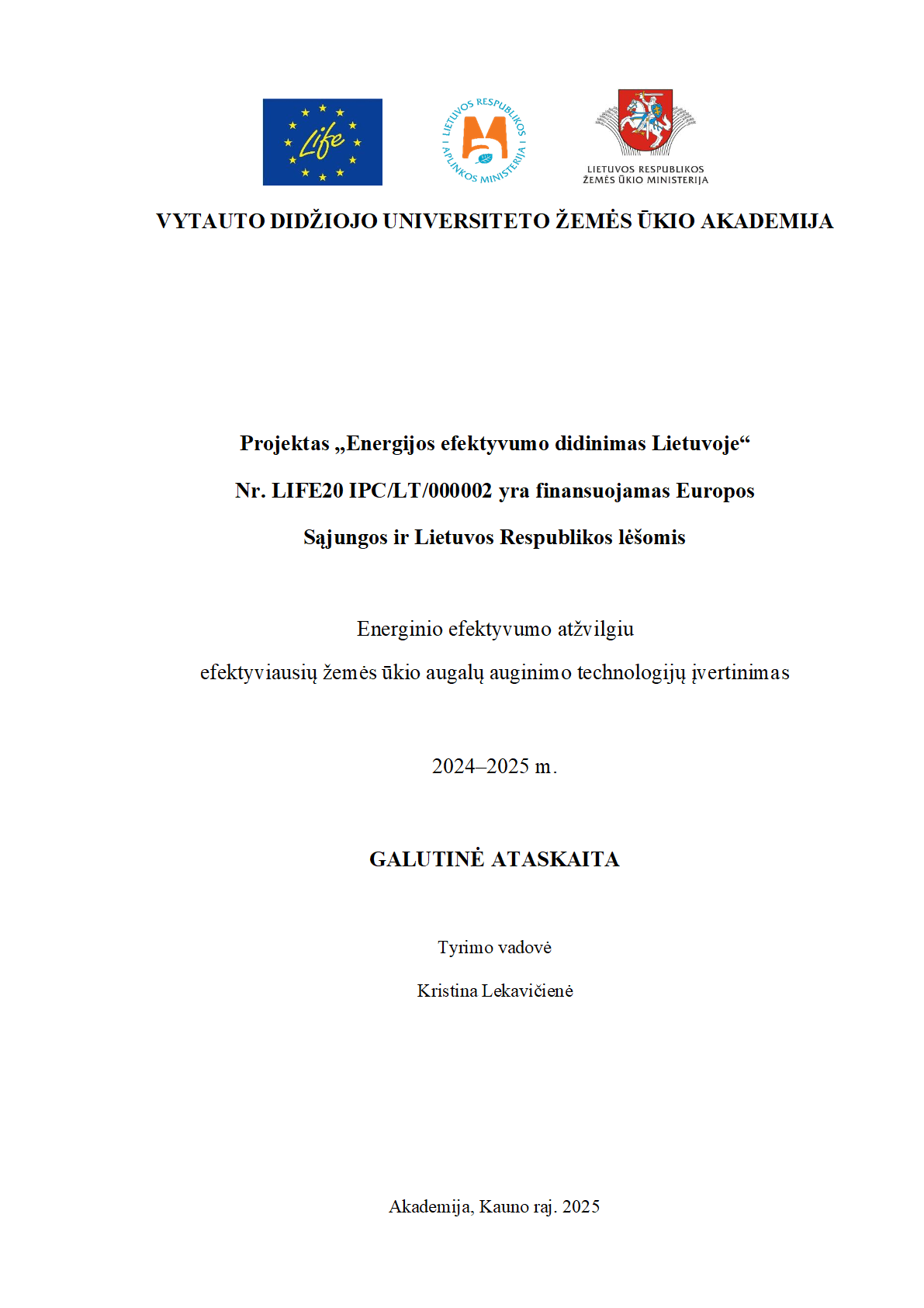 Assessment of the most energy-efficient crop cultivation technologies (Only in Lithuanian, English summary available)