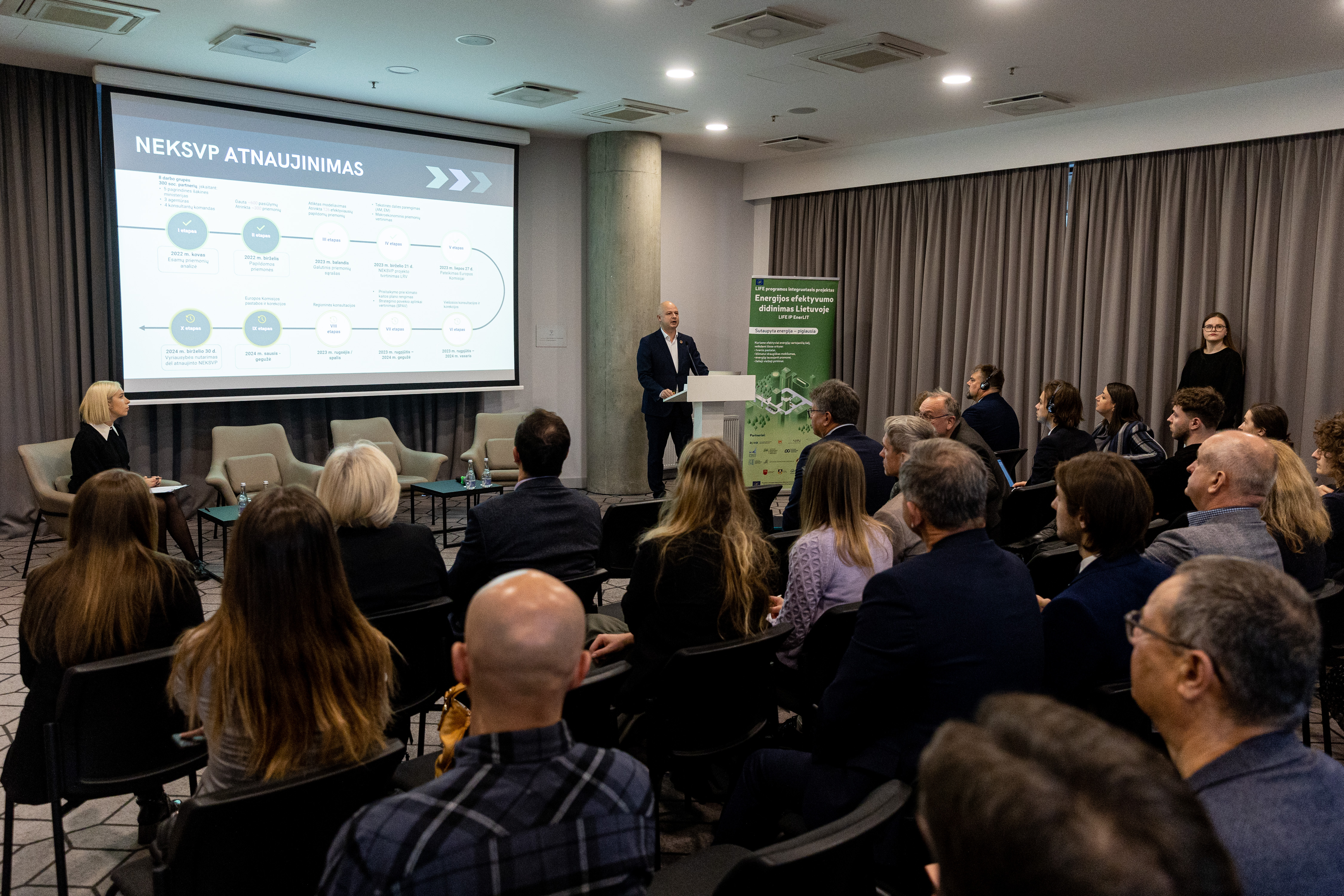 Speaking about the promotion of private investment, Minister of the Environment S. Gentvilas mentioned that Lithuania leads the European Union in terms of the number of people generating renewable electricity for their households. 'People are willing to invest because they feel the economic benefits. The situation is more difficult with gas boilers, which are not being replaced as quickly as we would like. State support for this should be much higher,' said the Minister. He mentioned the replacement of old cars, of which there are about 1.8 million in Lithuania, with electric cars as a problem sector. In addition to increasing financial support for this sector, he said, there is a need to change consumption habits, such as using public transport, cycling or walking.